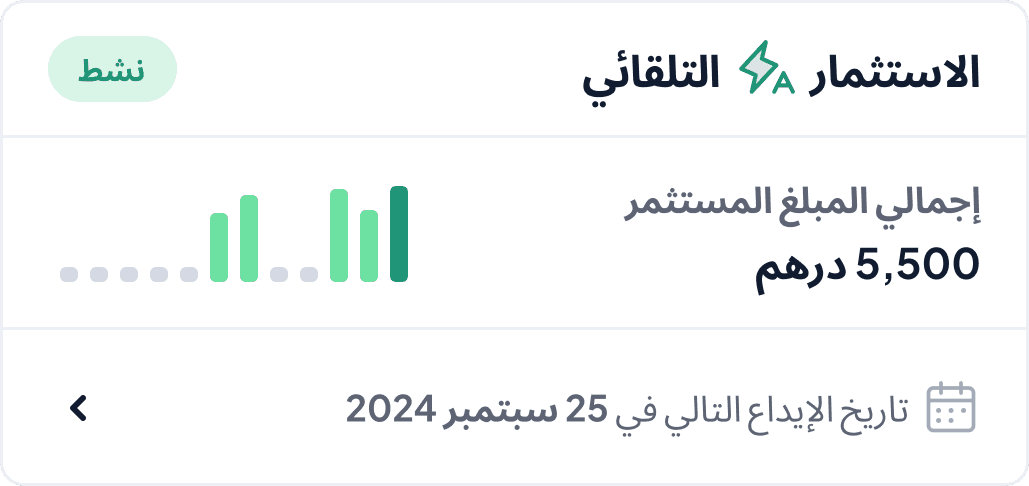 اختر المبلغ الذي ترغب في استثماره تلقائيًا كل شهر بدءًا من 500 درهم .